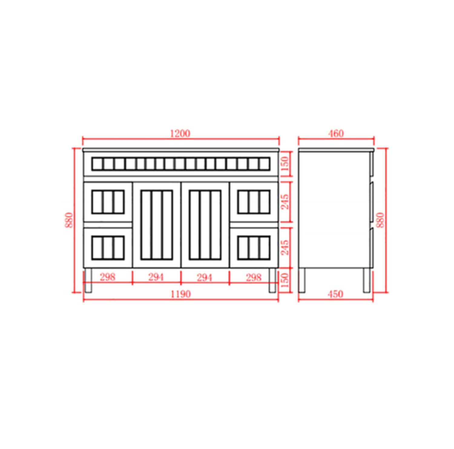 Acacia 1200mm White Floor Standing Vanity - Cabinet Only Side Drawer is backordered and will ship as soon as it is back in stock.