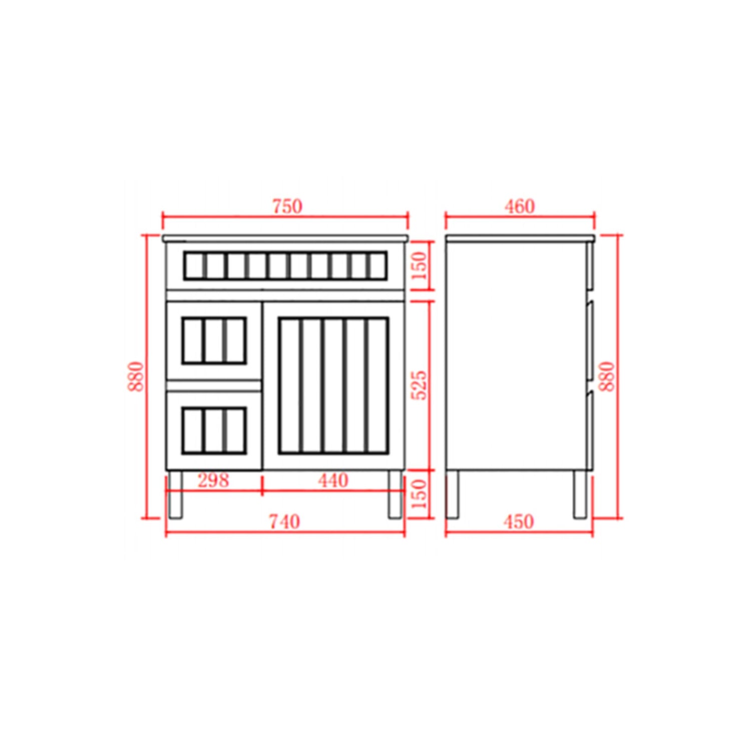 Acacia 750mm Black Floor Standing Vanity - Cabinet Only Left Hand Drawer is backordered and will ship as soon as it is back in stock.