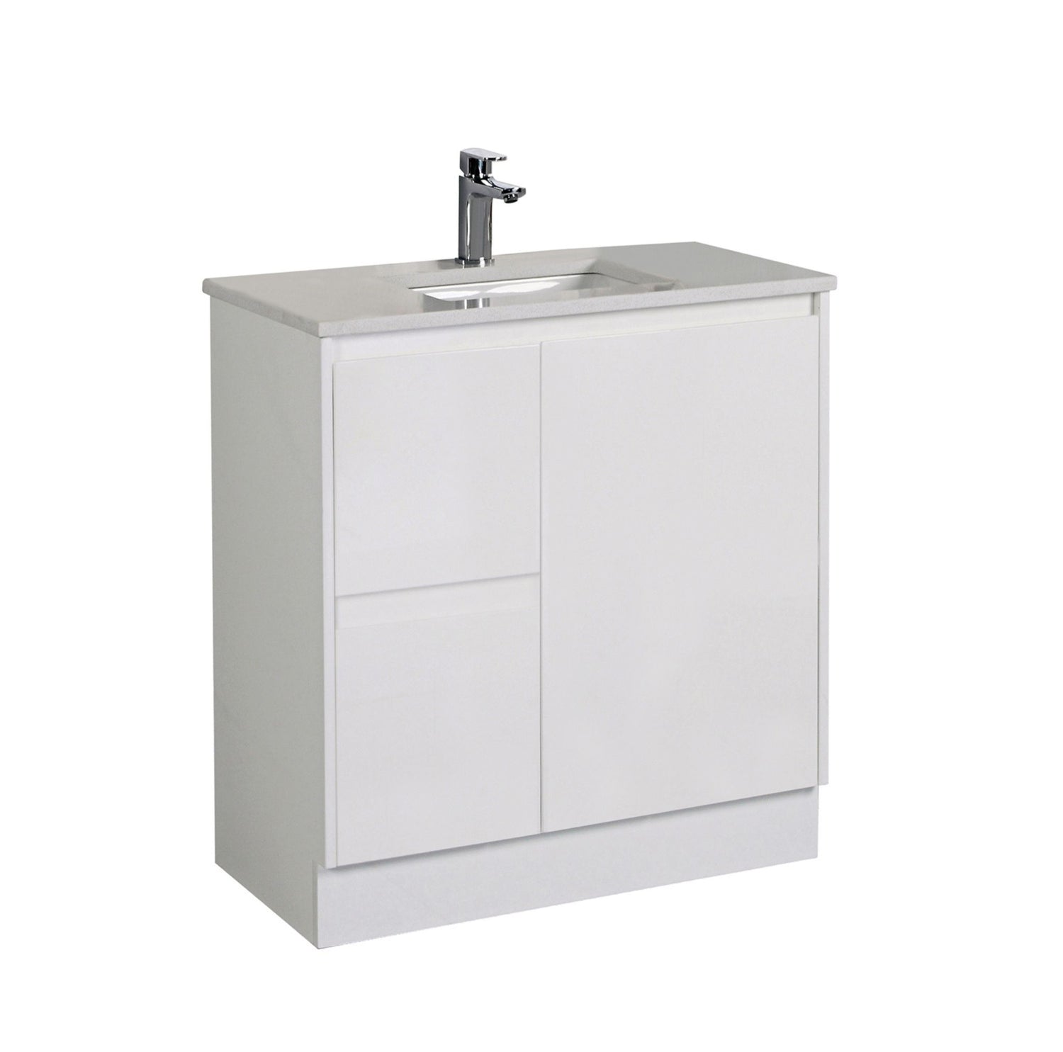 Alice 750mm Gloss White Floor Standing Vanity - Cabinet Only Left Hand Drawer is backordered and will ship as soon as it is back in stock.