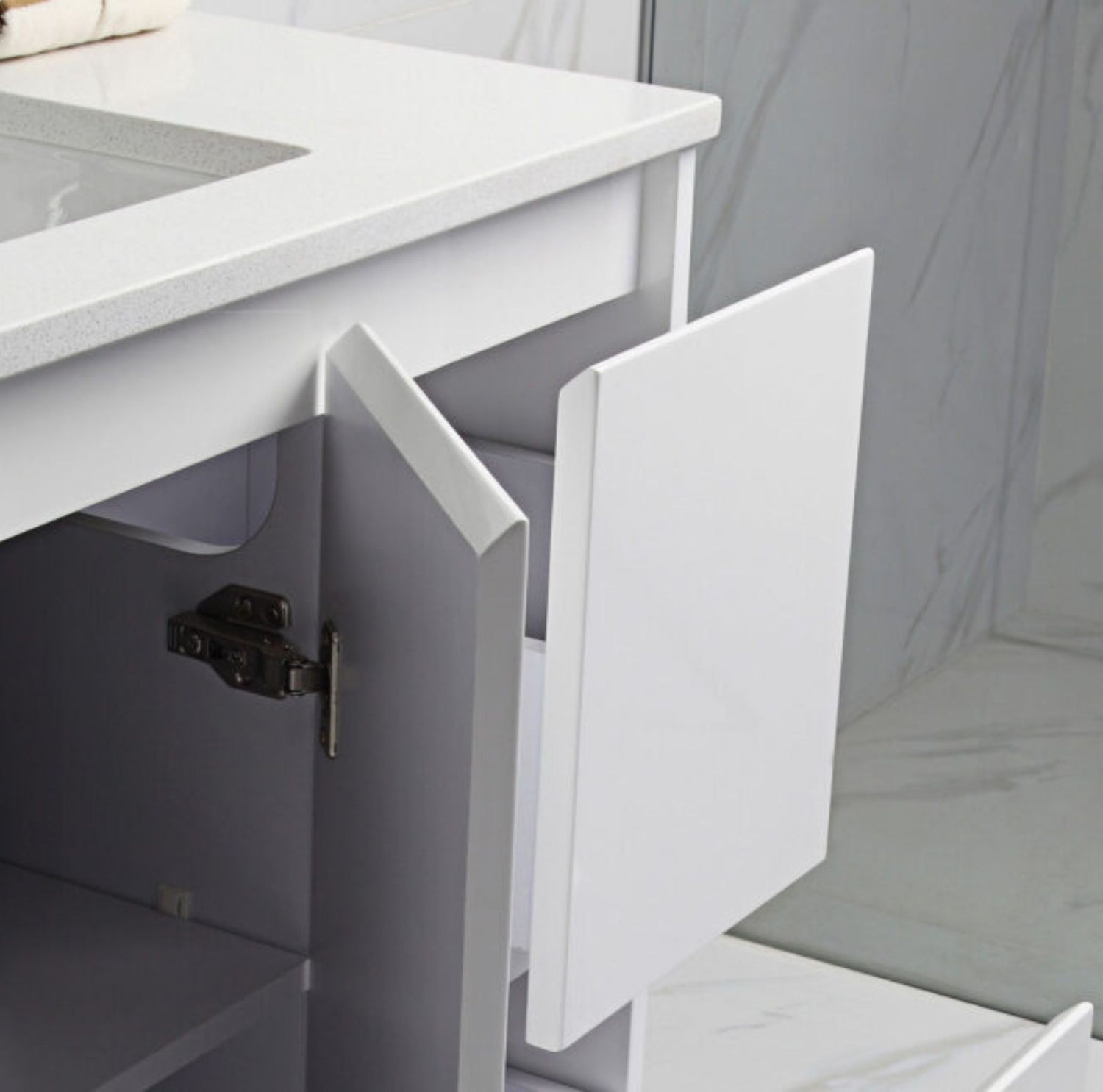 - Drawer and cupboard storage for bathroom essentials