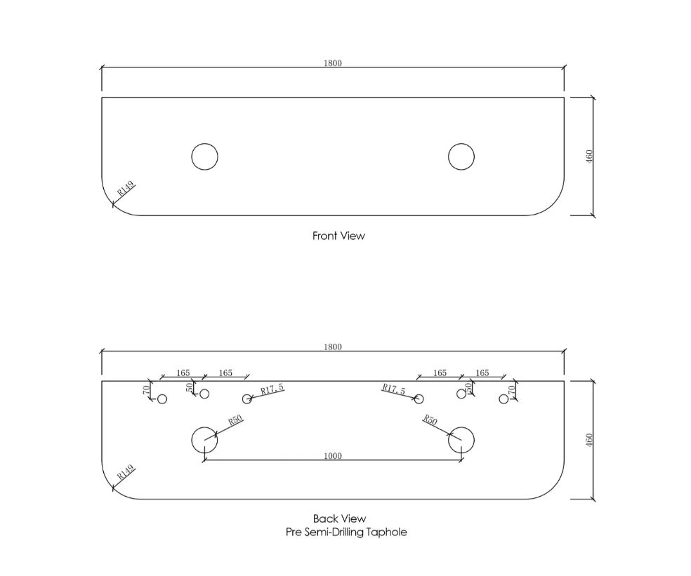 Construction: 3 drawer, High moisture resistant plywood, with adjustable internal shelf. (Shelf will require a cut out to be completed by tradesmen to allow for waste).