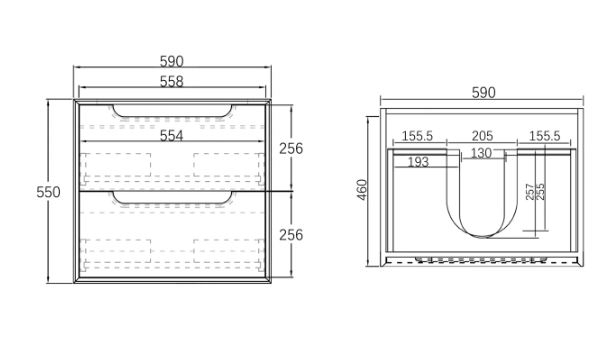 nspired by Australian bush and earthy textures, the Byron Vanity features a signature natural oak look or a contemporary black oak finish. Its soft close drawers are detailed with a mitred 45 degree edge. Made with a water resistant plywood core and a laminate wood grain texture finish. Truly a natural focal point in any bathroom project. The Byron vanity can be installed as a wall hung vanity OR as a floor standing vanity by selecting an add-on leg and shelf kit.