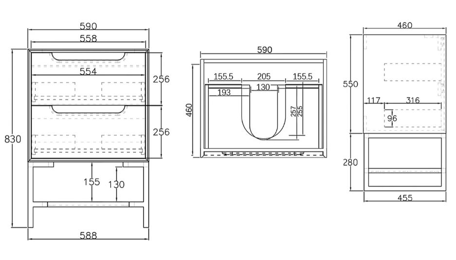 Inspired by Australian bush and earthy textures, the Byron Vanity features a signature natural oak look or a contemporary black oak finish. Its soft close drawers are detailed with a mitred 45 degree edge. Made with a water resistant plywood core and a laminate wood grain texture finish. Truly a natural focal point in any bathroom project. The Byron vanity can be installed as a wall hung vanity OR as a floor standing vanity by selecting an add-on leg and shelf kit.