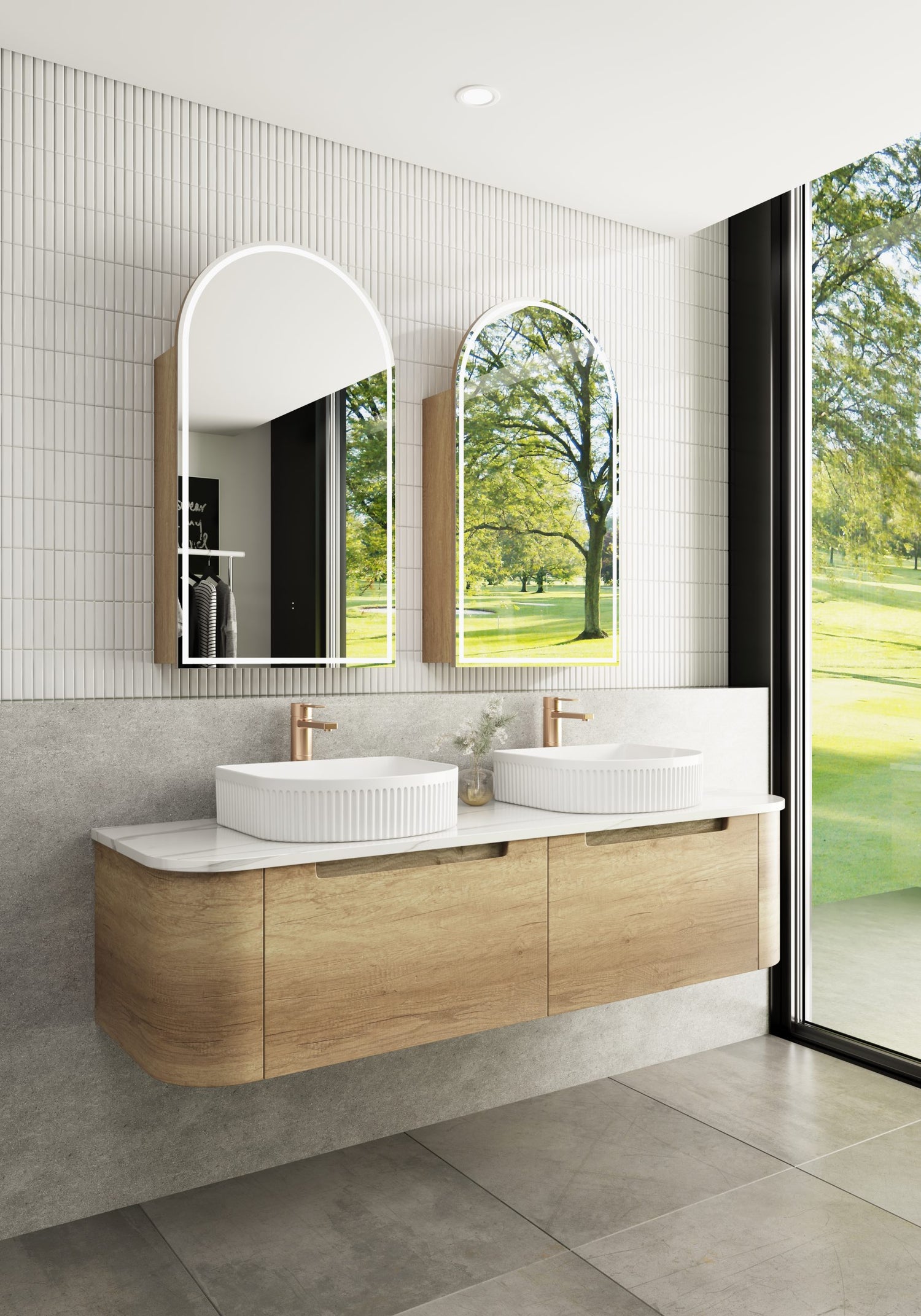 Carita 1500 Oak Wall Hung Vanity - Curve