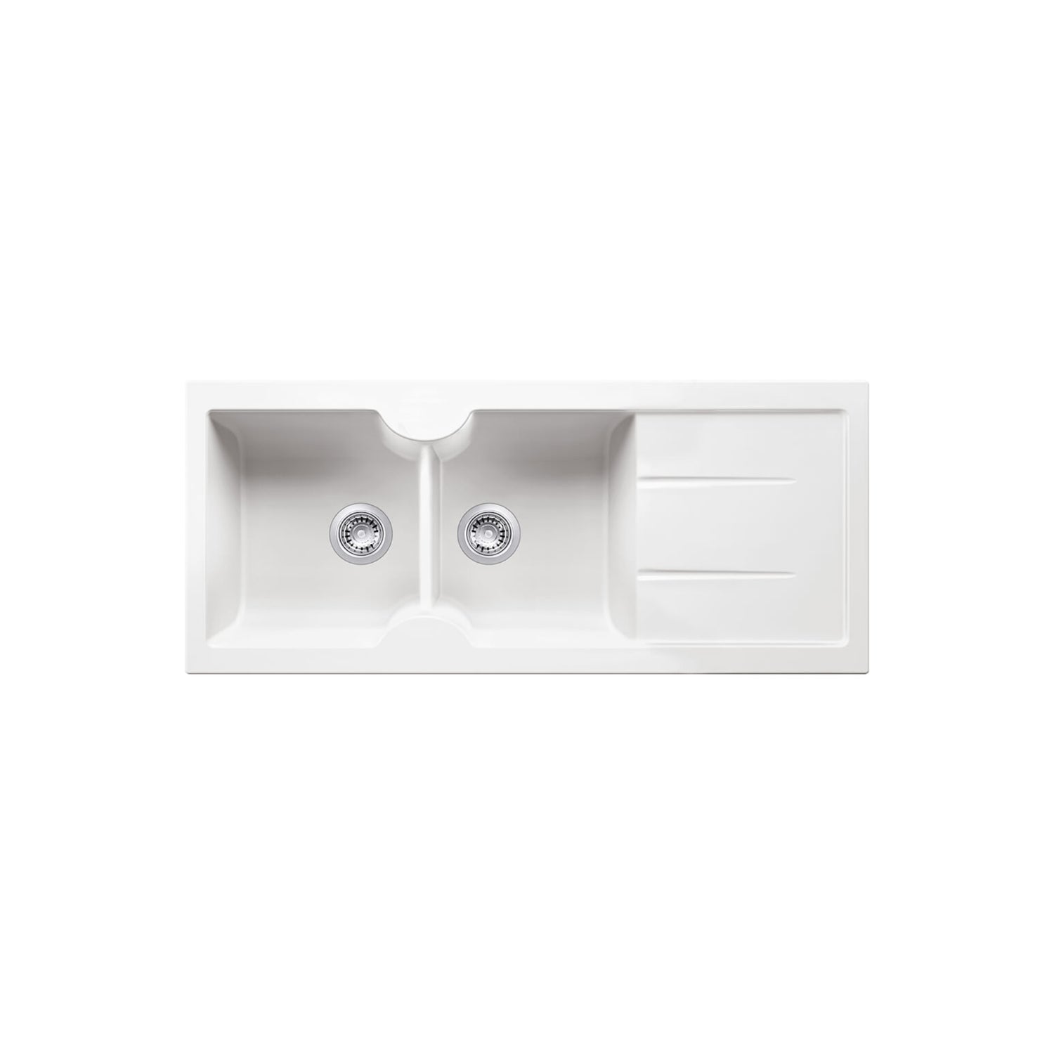 Cuisine 116 x 50 Inset Fine Fireclay White Sink - Double Bowl and Drainer