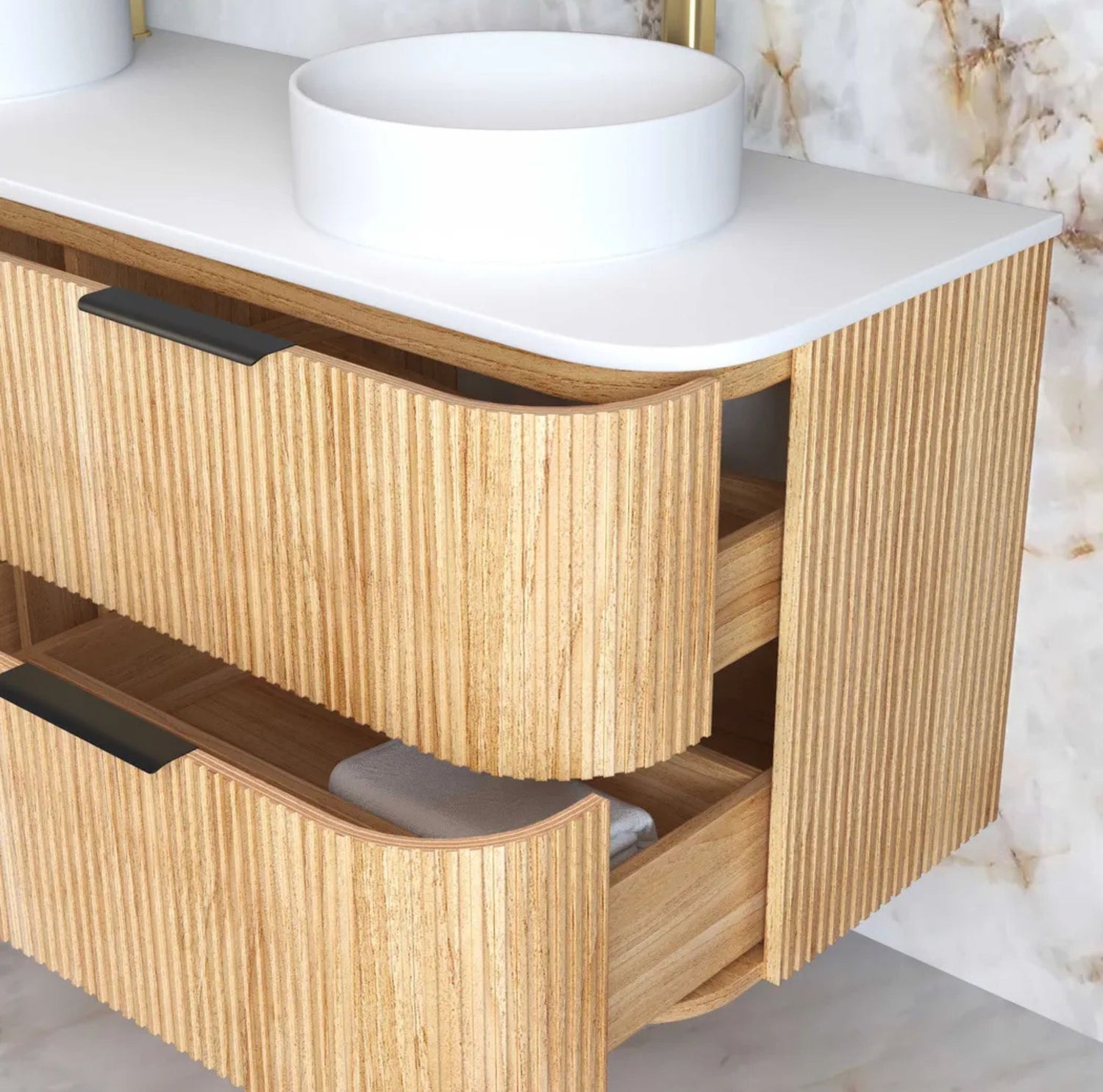 Havana 1500mm Woodland Oak Wall Hung Vanity - Curve Fluted