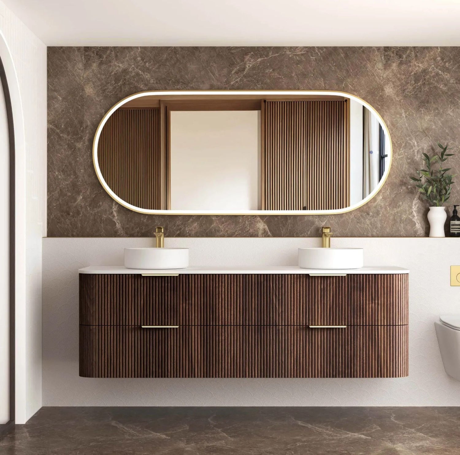 Havana 1800mm Sable Walnut Wall Hung Vanity - Curve Fluted