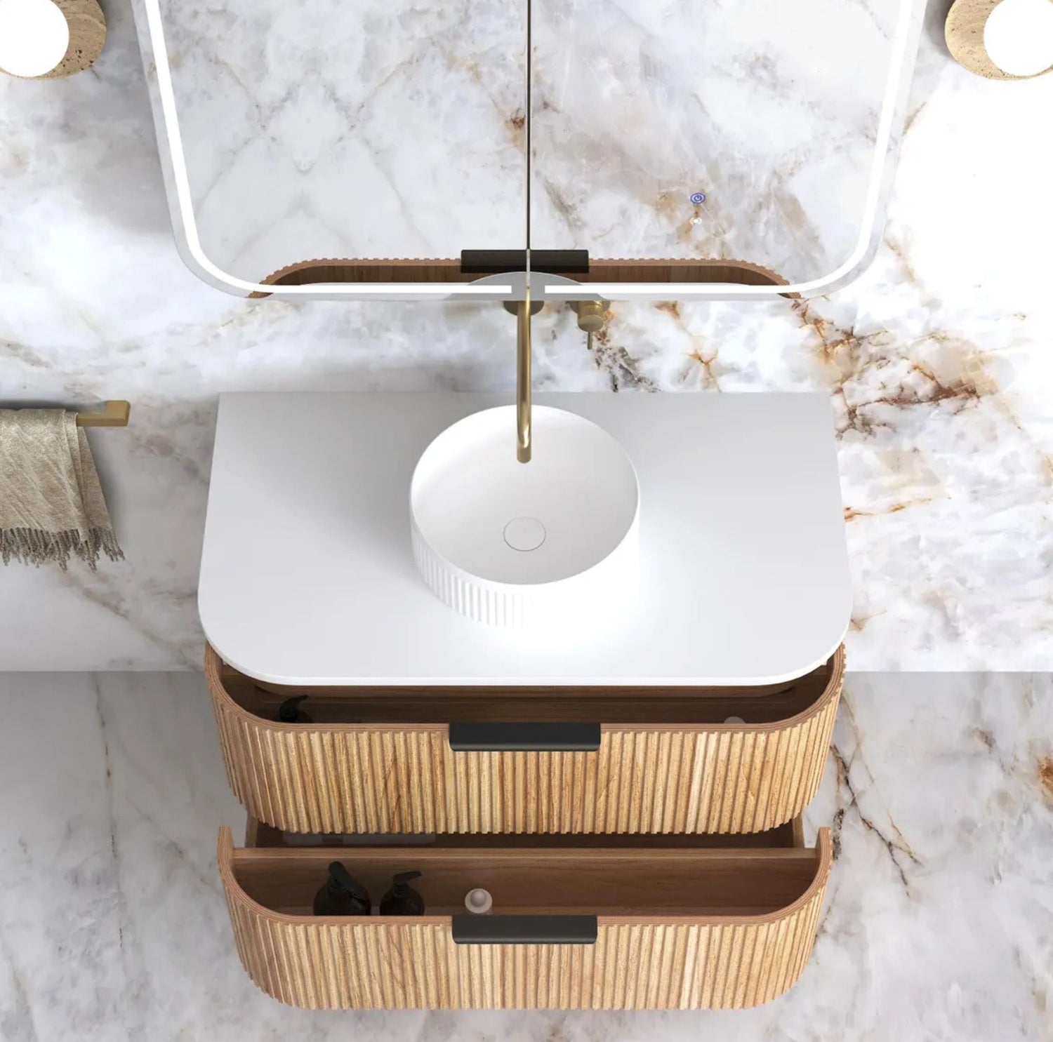 Havana 900mm Woodland Oak Wall Hung Vanity - Curve Fluted