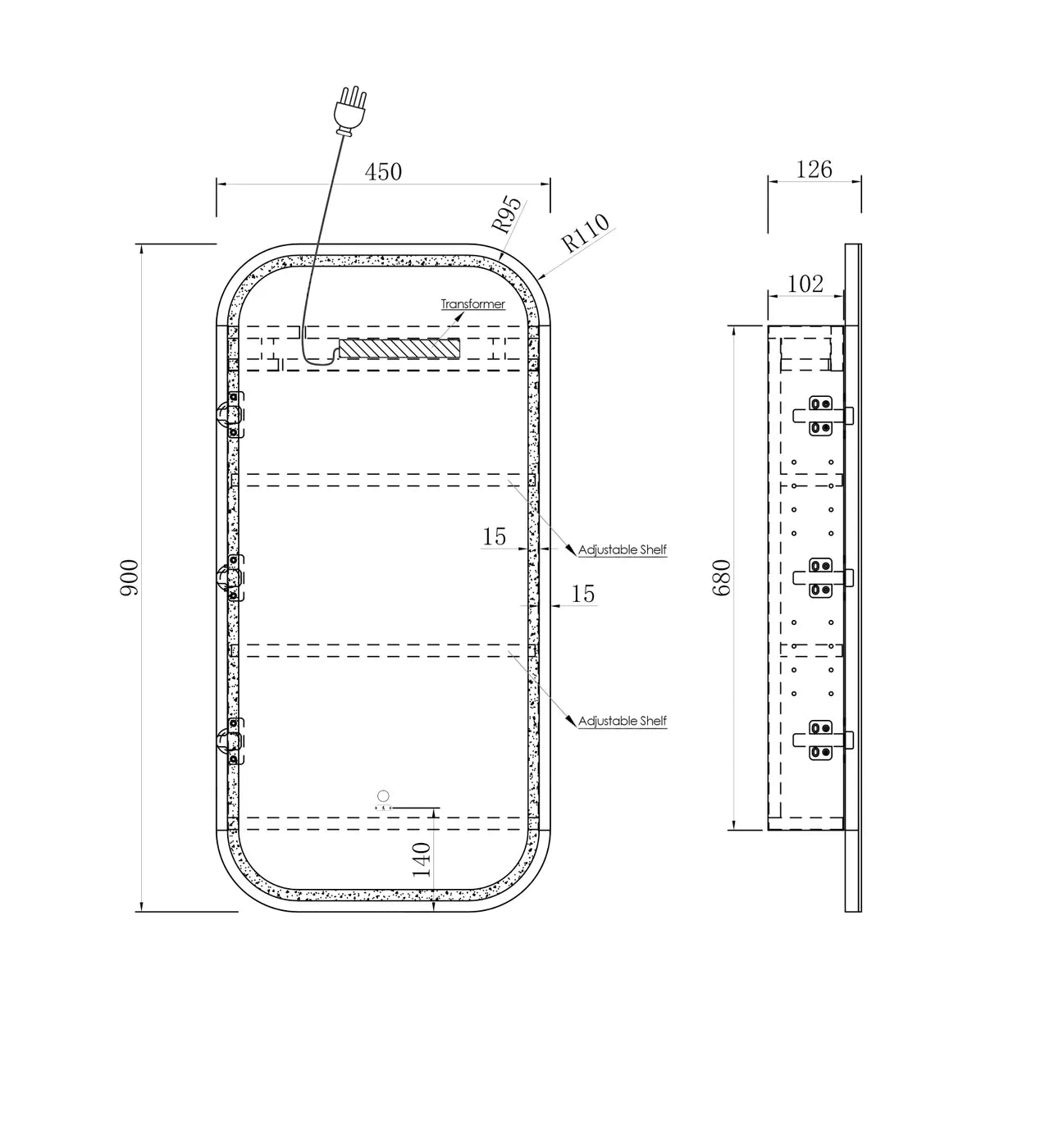 LED Newport Black Oak Shaving Cabinet Soft Square - 900x450