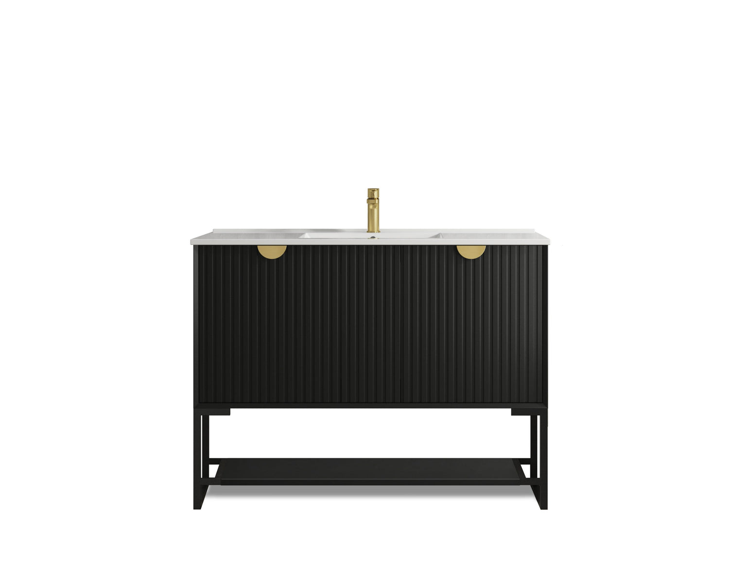 Marlo Vanity 1200mm - Matte Black - Brushed Gold Handle / No Legs (Wall Hung) / None (Cabinet Only) is backordered and will ship as soon as it is back in stock.