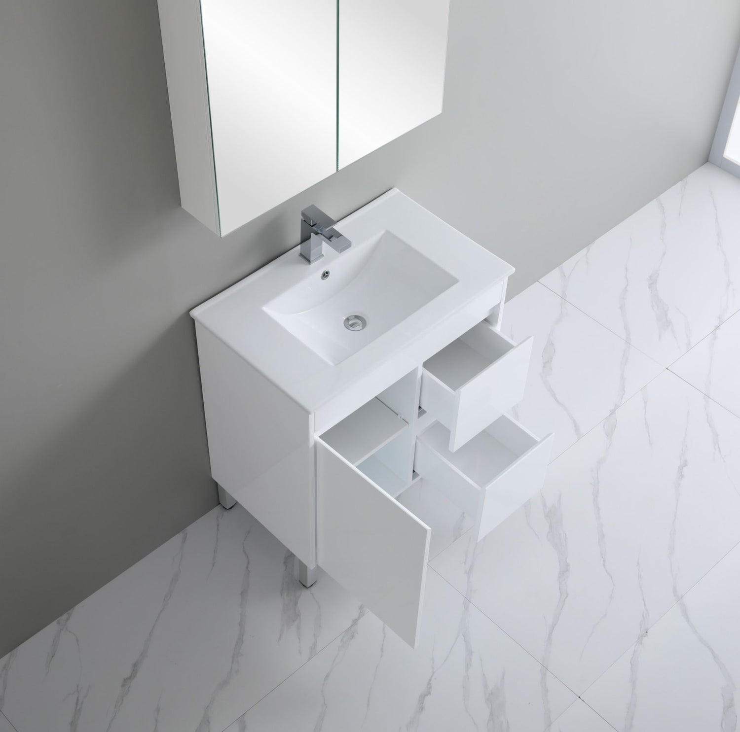 Polar 750mm White Free Standing Vanity - Cabinet Only Left Hand Drawer is backordered and will ship as soon as it is back in stock.