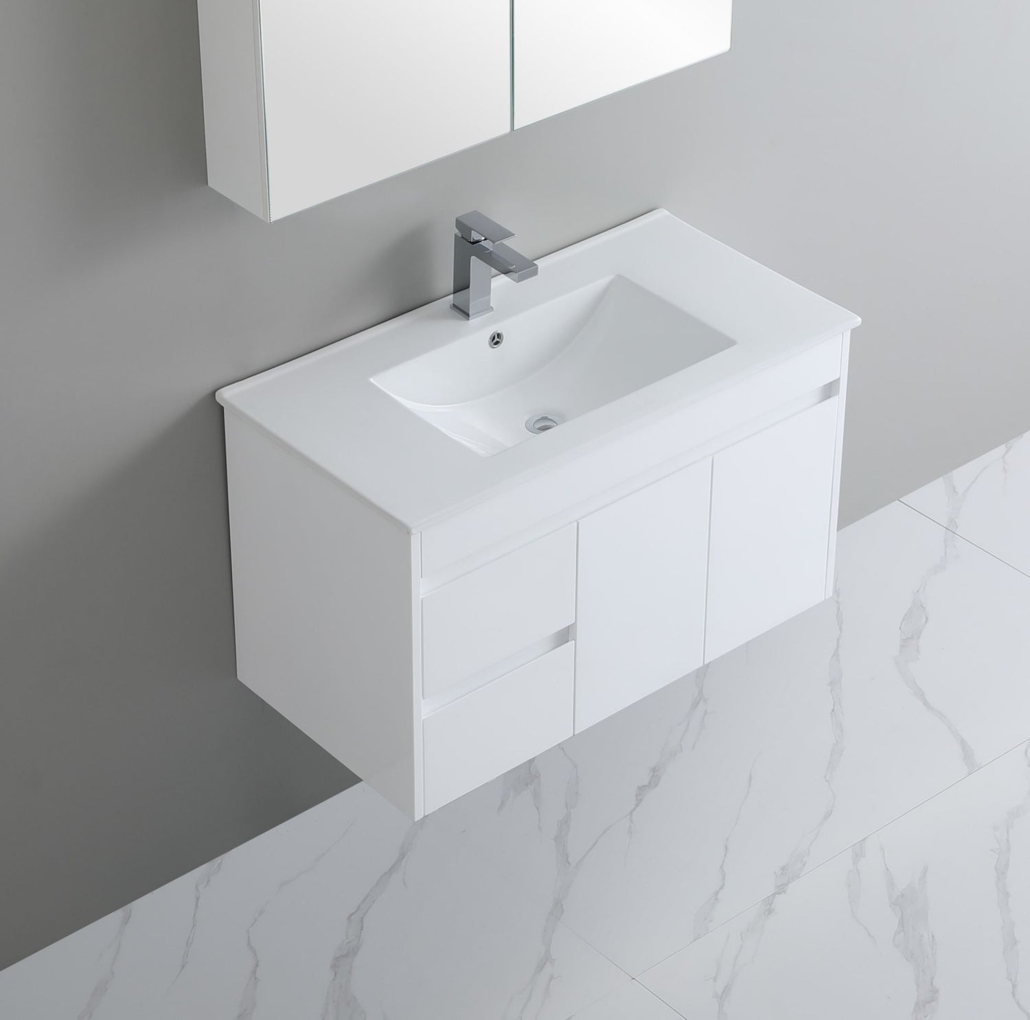 Polar 900mm White Wall Hung Vanity - Cabinet Only Left Hand Drawer is backordered and will ship as soon as it is back in stock.