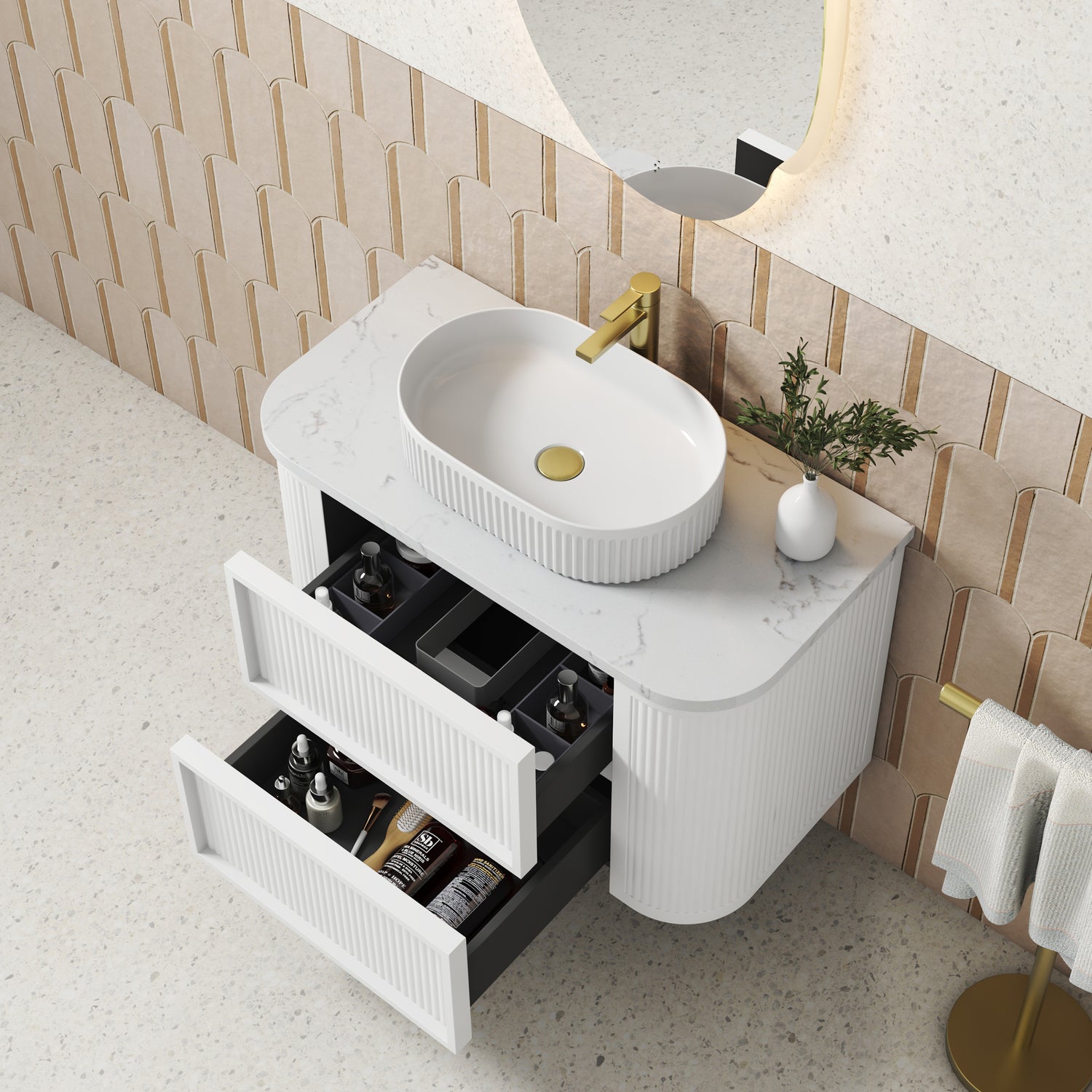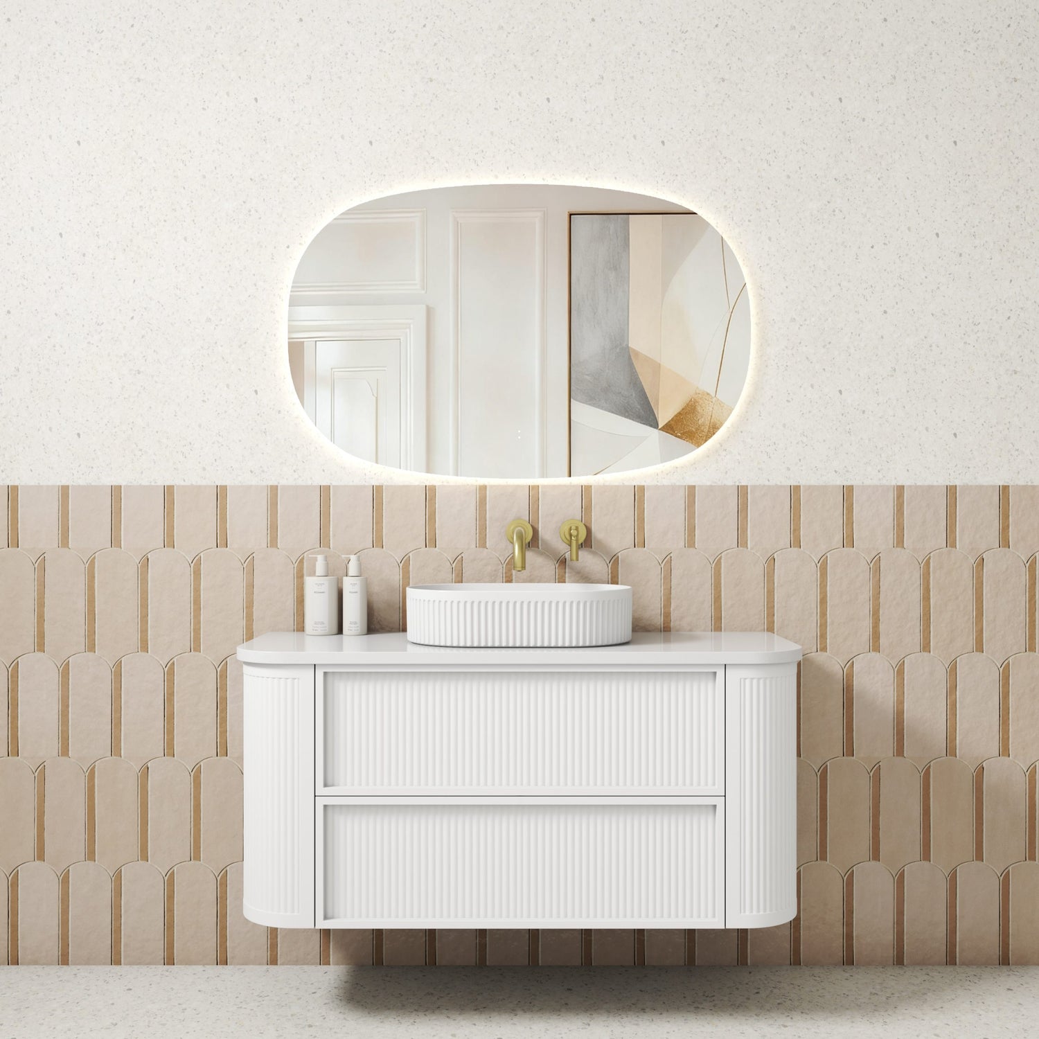 Ramee 1200mm Matte White Wall Hung Vanity - Fluted