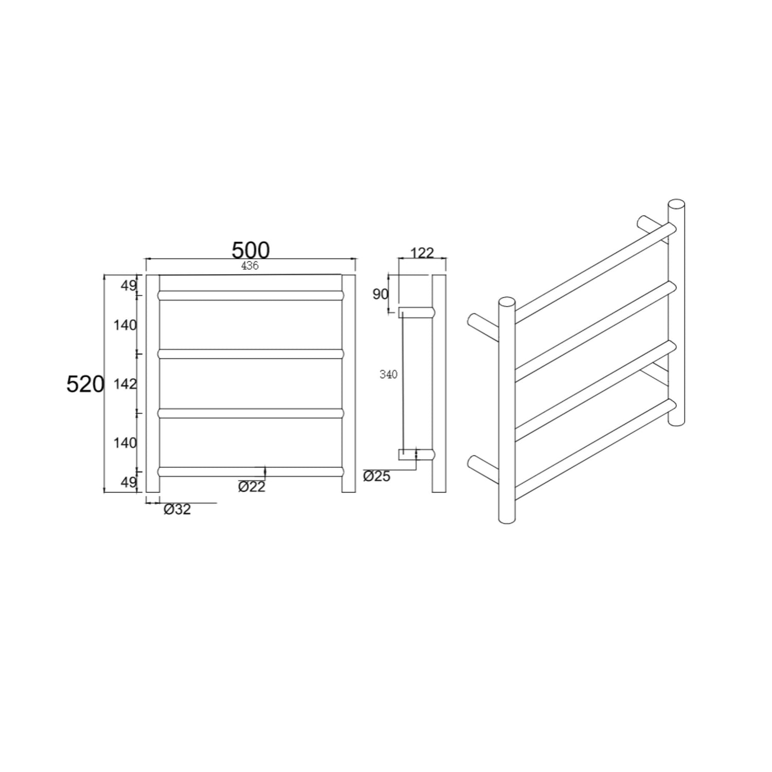 Round Electric Heated Towel Rack 4 Bars - Chrome