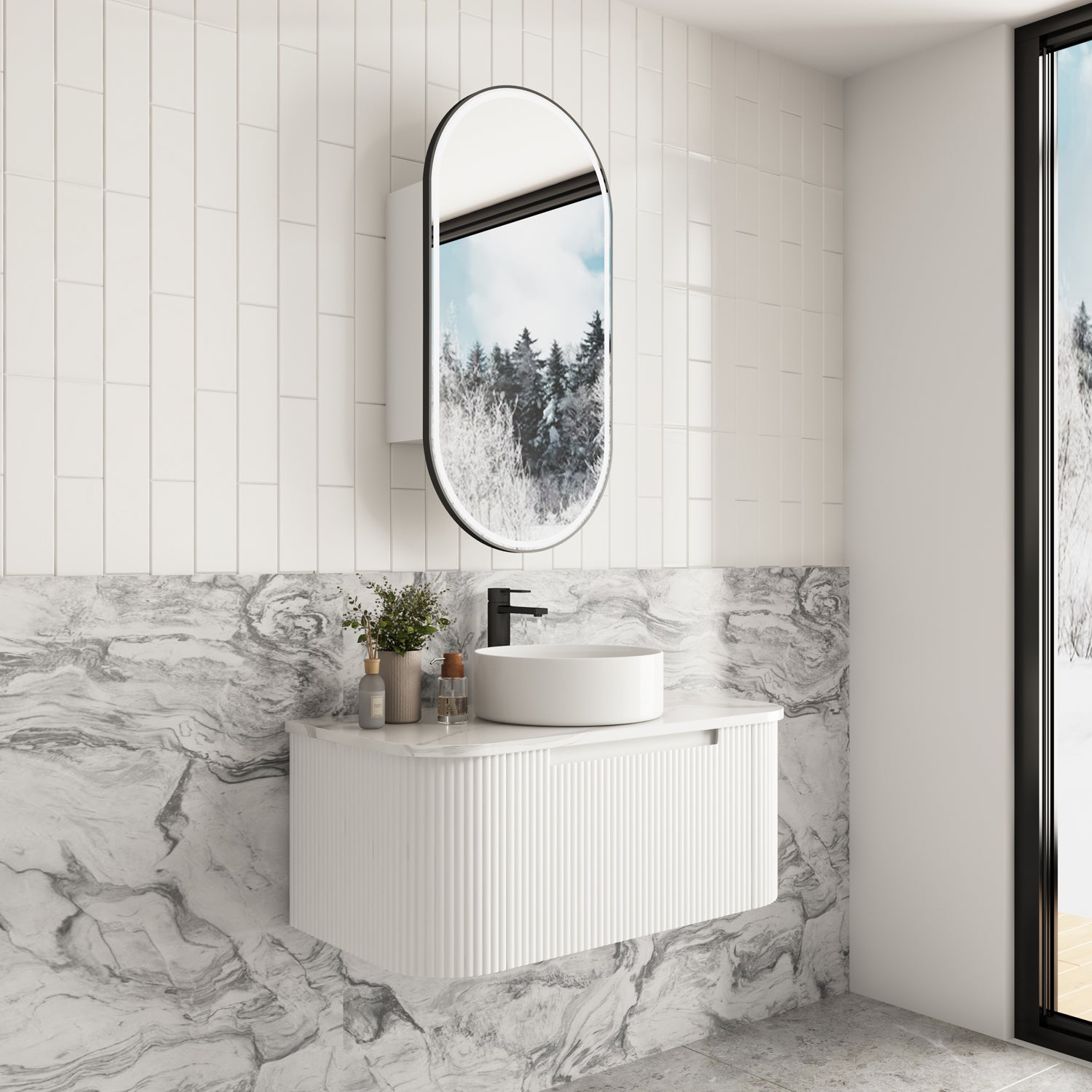 Savio 900mm Matte White Wall Hung Vanity - Curve Fluted