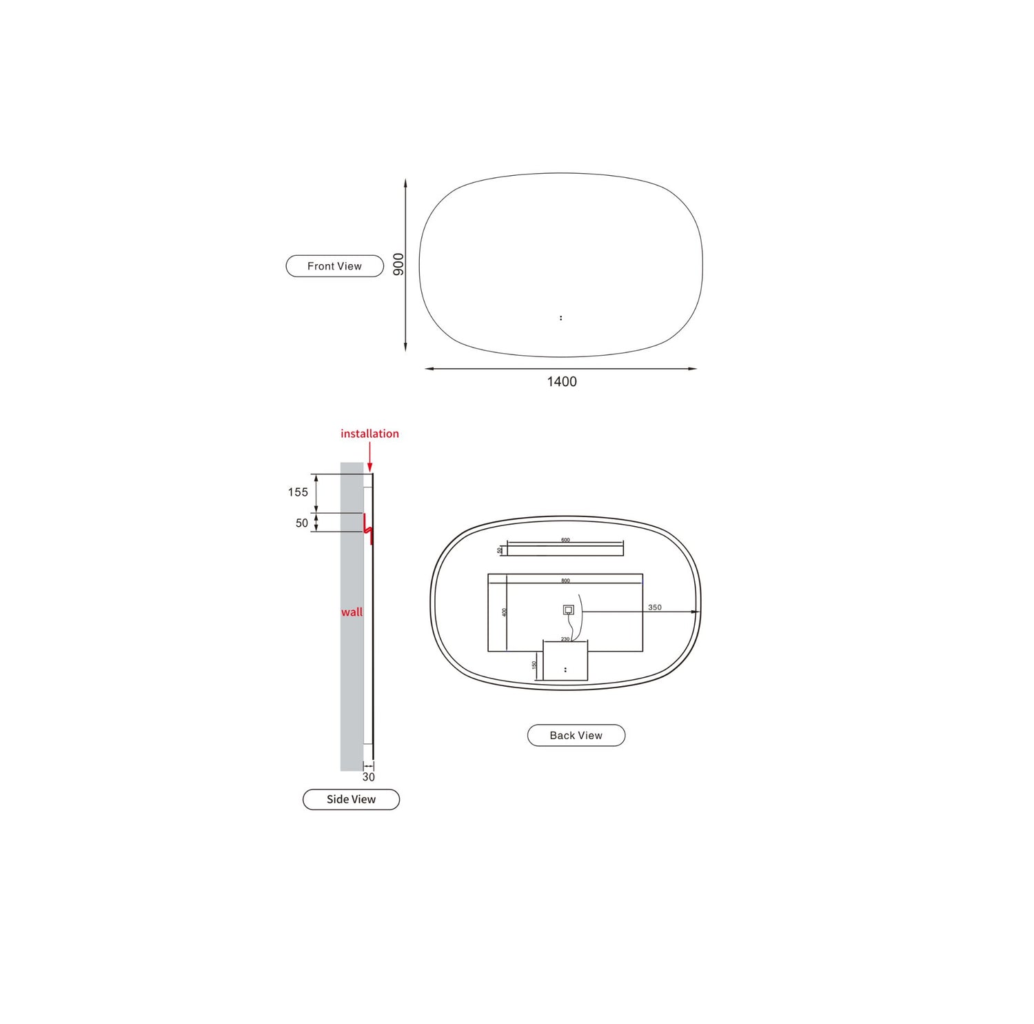 Valmont 1400mm Horizontal LED Mirror - Frameless