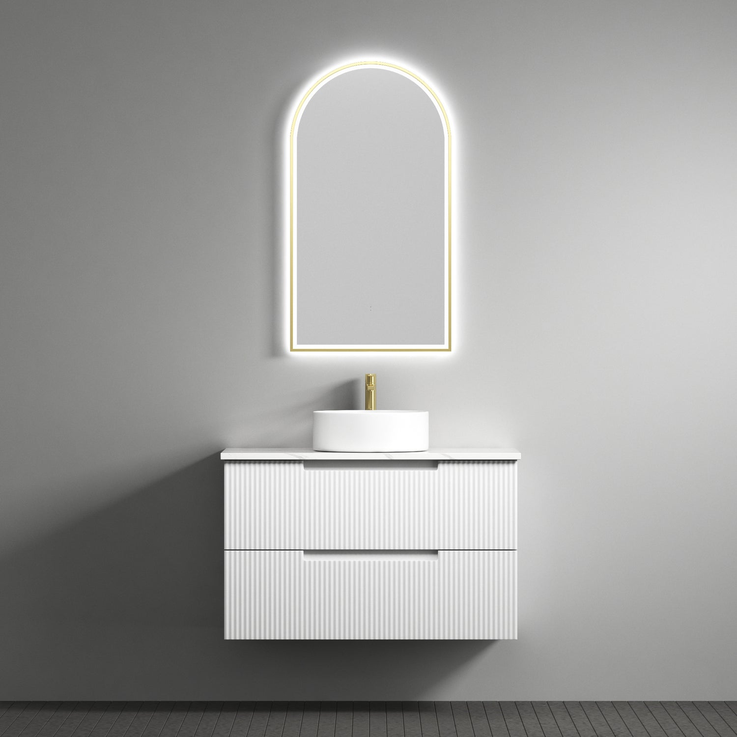 Verona Mark II 900mm Matte White Wall Hung Vanity - Fluted